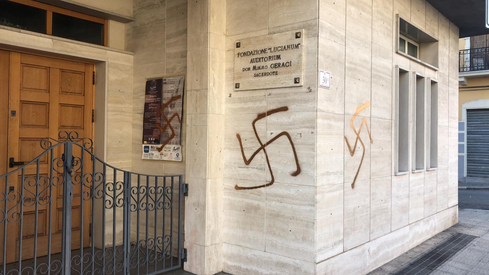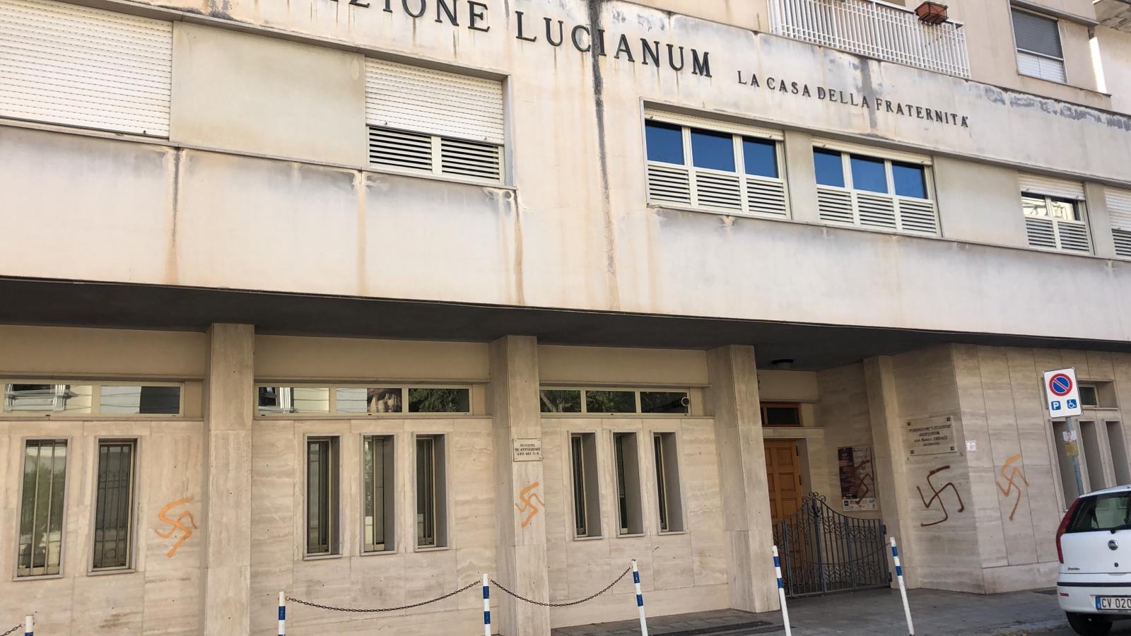 Minacce e svastiche sui muri del Lucianum. Le foto