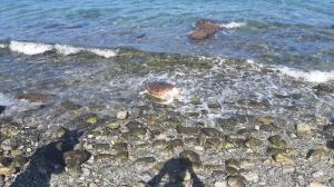Tra lo stupore dei passanti é stata recuperata dalla riva una tartaruga, con ogni probabilità una Caretta Caretta, spiaggiata questa mattina, senza ferite apparenti.