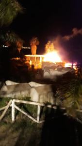 Sette uomini dei Vigili del Fuoco hanno domato le fiamme dopo due lunghe ore di lavoro attraverso l’utilizzo di due autobotti. Le fiamme hanno immediatamente avvolto un gazebo e due palme. La struttura in legno dei gazebo posizionati di fronte la spiaggia, era di circa 200 metri quadrati.