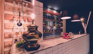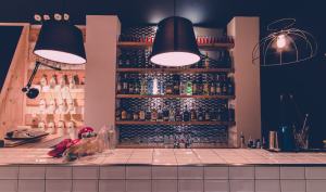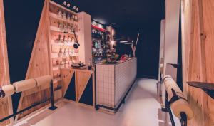 Le parole chiave del nuovo punto di ritrovo per giovani radical chic sono geometria e semplicità, riflesse nella scelta dei materiali e delle forme. Ma anche da una palette di colori tenui, o quasi! Il concept è incentrato su un’atmosfera rilassante e senza tempo. Regista il bancone dei Piccoli Distillati e dei Cocktail, rivestito con le mattonelle della nonna bianche, lucide e diamantate, le sospensioni decisamente “wireframe” perciò a fil di ferro dal carattere nettamente rigido, lampadine vintage con filamento a vista.