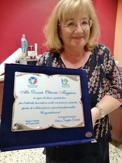 Dirigente scolastica e docenti, è da osservare, che da marzo in poi, come in tutta Italia, hanno proficuamente e meravigliosamente continuato l’attività didattica a distanza, collegandosi con gli alunni e i loro familiari attraverso telefoni cellulari e personal computer. Ne è scaturita una DAD, didattica a distanza autorizzata dal Miur, ricca di sentimenti e di esperienze socio-educative di grande valore. A queste esperienze hanno partecipato con grande impegno sia la docente dell’infanzia Francesca Catalano, che l’insegnante della primaria di Santa Caterina Ottavia Miggiano, salutate gioiosamente dalle loro colleghe durante il Collegio. A conclusione della riunione la dirigente Serafina Corrado ha consegnato alle due docenti una artistica targa in ricordo delle loro attività educative nell’ic Falcomatà Archi.