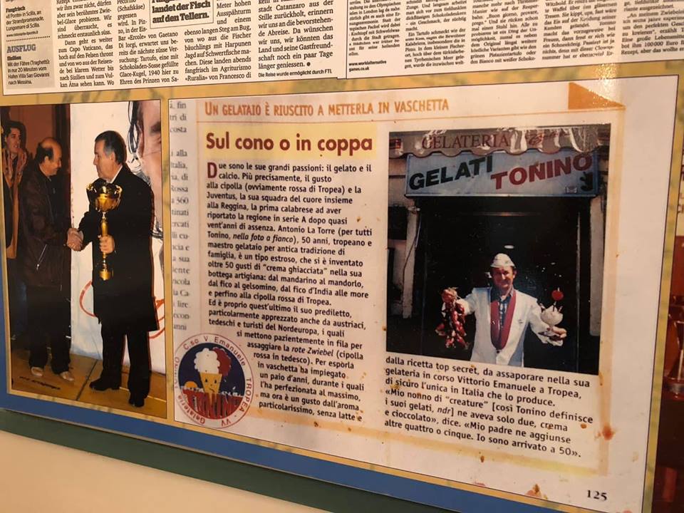 Alle pareti sono diversi i ritagli di giornale appesi che incorniciano la storia di ‘Tonino’ e la sua lunga sequenza di premi e riconoscimenti ottenuti nel corso degli anni. La passione, come spesso accade, l’ingrediente principale che accompagna verso il successo. Tonino è senza dubbio una delle tappe irrinunciabili per chiunque arrivi a Tropea e dintorni, un’eccellenza tutta calabrese da evidenziare ed esportare fuori dai confini regionali e nazionali.