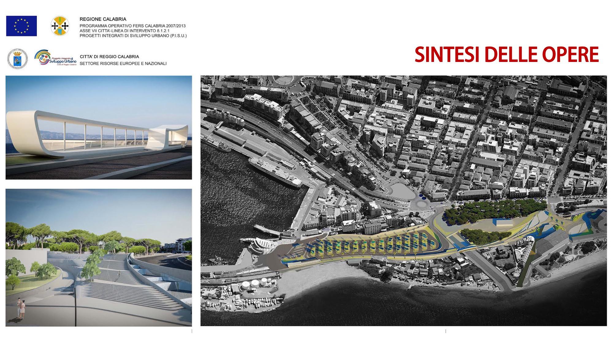 L’architetto Giandomenico Chirico ha fatto parte dello staff che ha progettato l’opera, un gruppo di lavoro vasto e che fa parte di un team che ha realizzato (e realizzerà) opere importanti in Russia, Stati Uniti e Arabia Saudita.’L’area di intervento, piuttosto vasta, si estende per circa 6,5 ettari e le opere architettoniche essenzialmente interessate sono: la passeggiata panoramica e il percorso ciclabile, le piazze e la scalinata, il nuovo terminal, il parcheggio con le pensiline fotovoltaiche, via Candeloro e la storica pineta Zerbi, che -dichiara Chirico- diventerà un polmone verde chiuso al traffico, con decine di alberi che verranno piantati’.