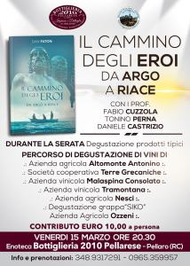 - Si parte venerdì 15 marzo alle ore 20,30 presso la Bottiglieria 2010 Pellarese (unico evento del programma che avrà luogo al di fuori della Sala Museo “Il Ferroviere”) con “Il Cammino degli Eroi, da Argo a Riace”. Un viaggio nella storia della Magna Grecia presentato da un fantastico trio di professori, Daniele Castrizio, Tonino Perna e Fabio Cuzzola.